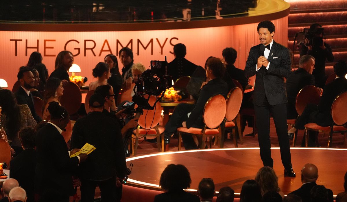 LOS ANGELES — Trevor Noah once again roamed through the audience during his monologue to open the Grammy Awards, taking pokes at the stars while standing right next to them, but he saved his most pointed joke for someone who was absent.