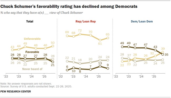 All of this data precedes the collapse of the Schumer Shutdown, however. And so too, apparently, does the data Harry Enten used this morning from Pew Research. Their most recent data comes from a late-September poll, and it looked pretty grim for the Senate Minority Leader even without his stunt: