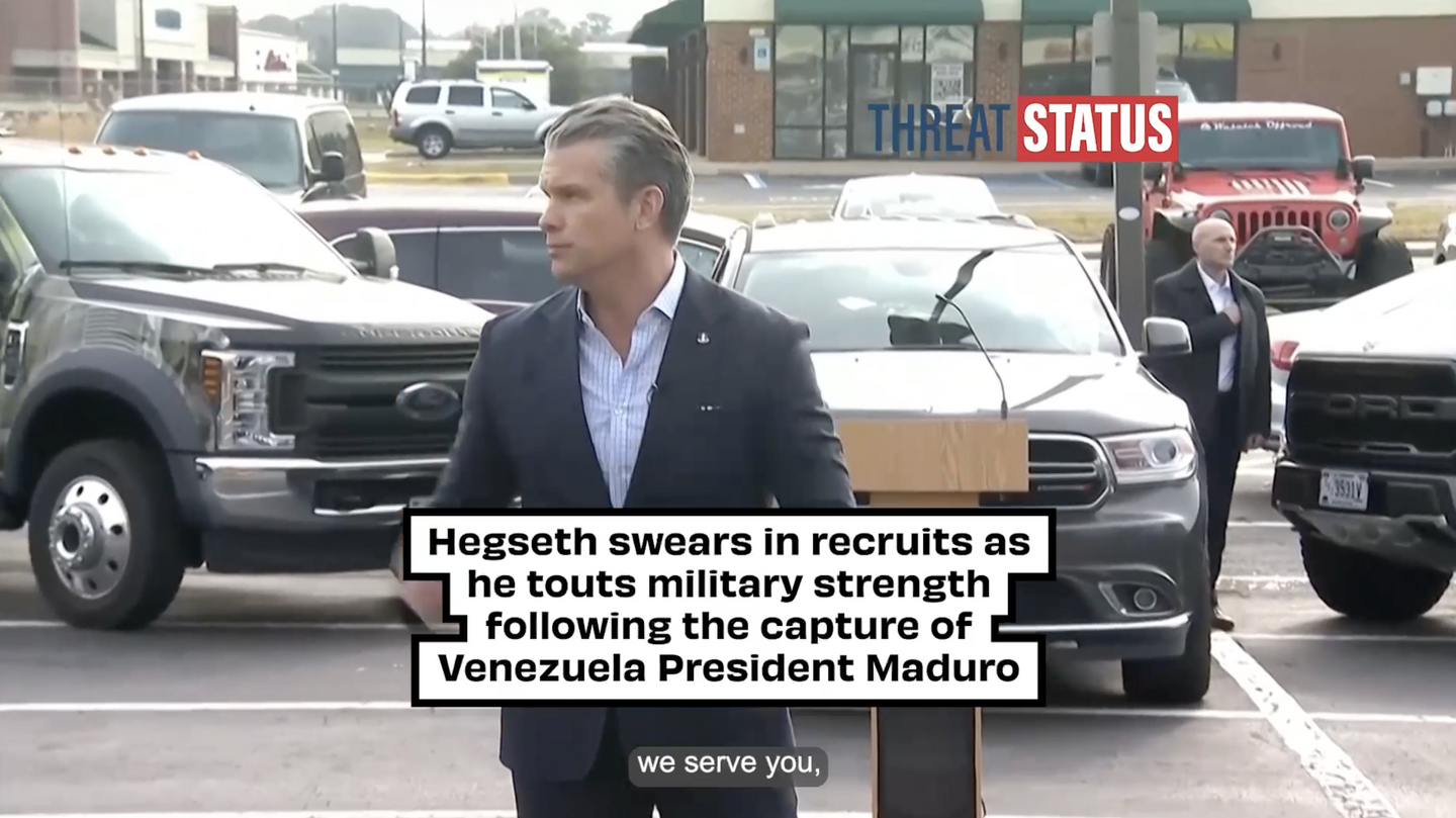 Defense Secretary Pete Hegseth touts the strength of the U.S. military during the Venezuela intervention while swearing in new recruits in Virginia.