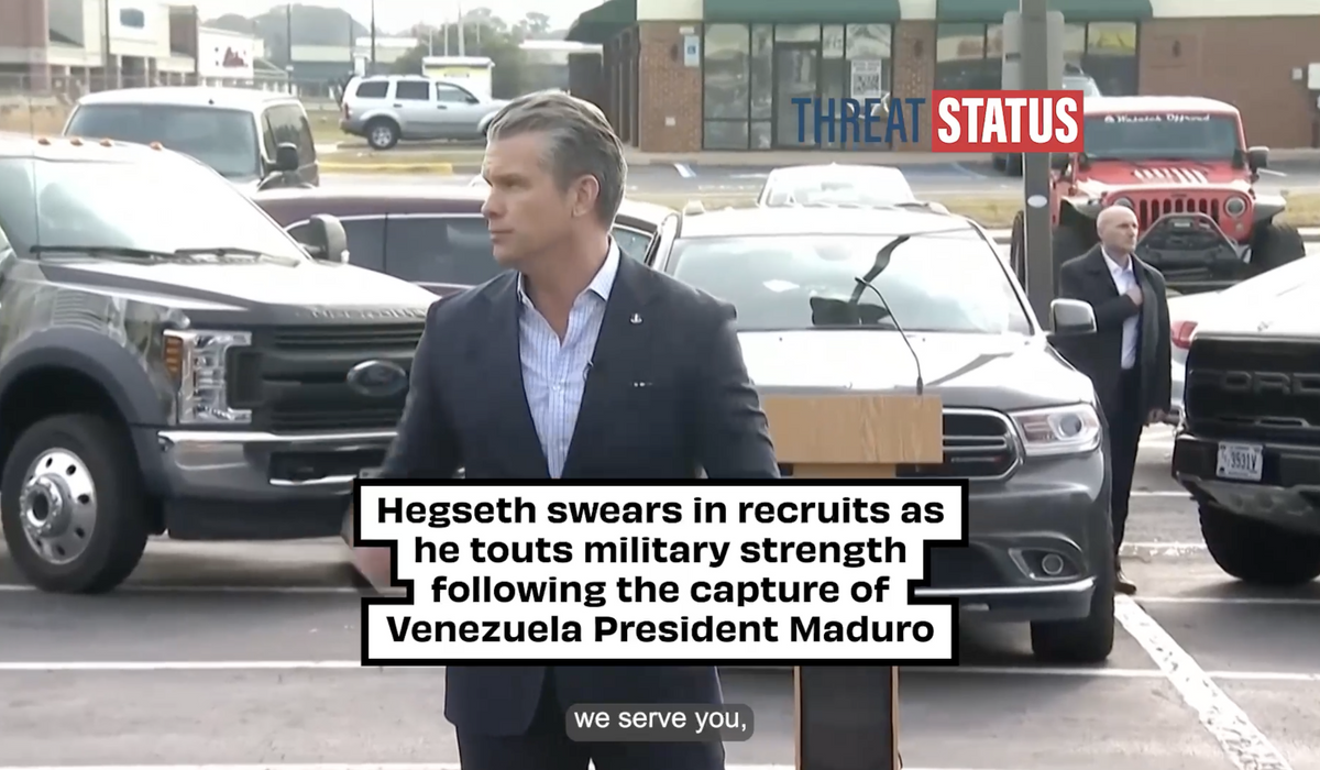 Defense Secretary Pete Hegseth touts the strength of the U.S. military during the Venezuela intervention while swearing in new recruits in Virginia.
