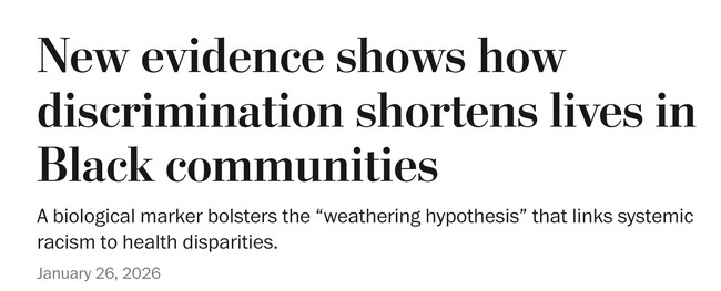 Nearly half of the mortality gap between Black and White adults can be traced to the cumulative toll of stress and inflammation, a new study shows.These two biomarkers bolster the “weathering hypothesis” that links systemic racism to health disparities. https://wapo.st/4rg6NWj