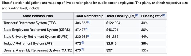 The accountants found of the $224.3 billion in bills Illinois needed to pay down, over $148.6 billion of the cost stemmed from unfunded pension benefits for government employees. The next largest line item was bonds.