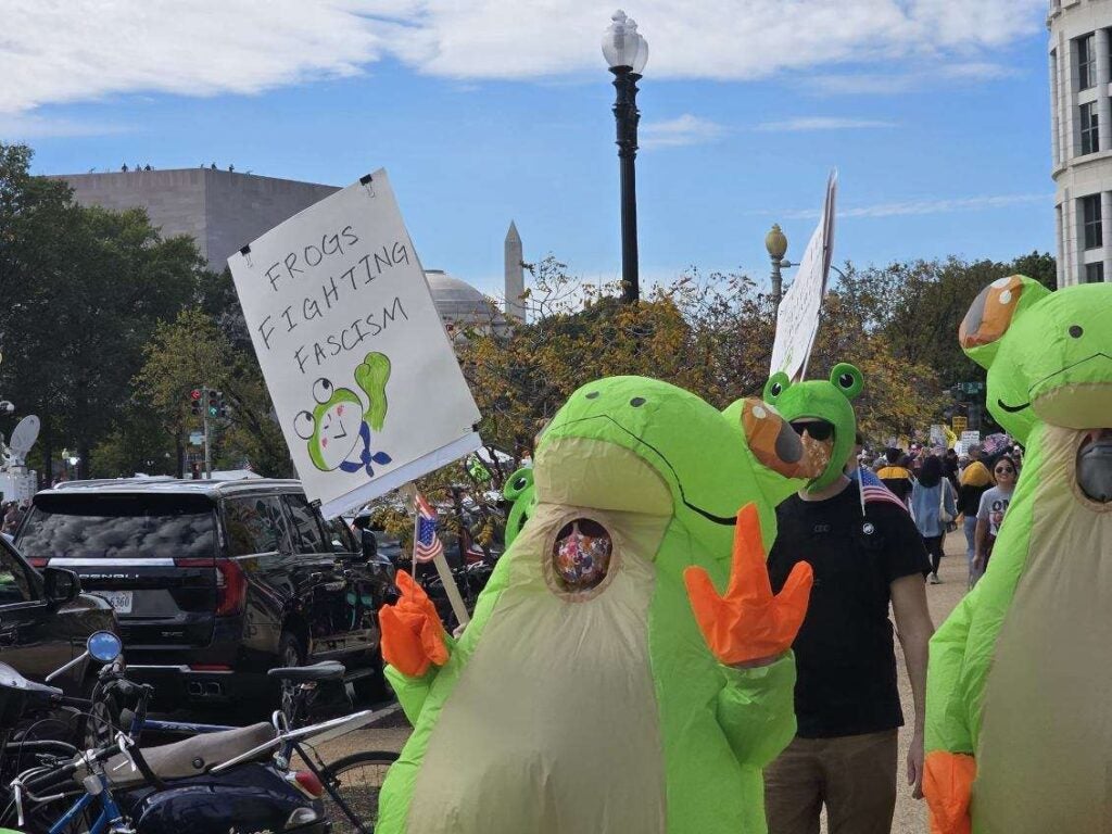 Political protesters or walking advertisements for a Halloween costume shop?