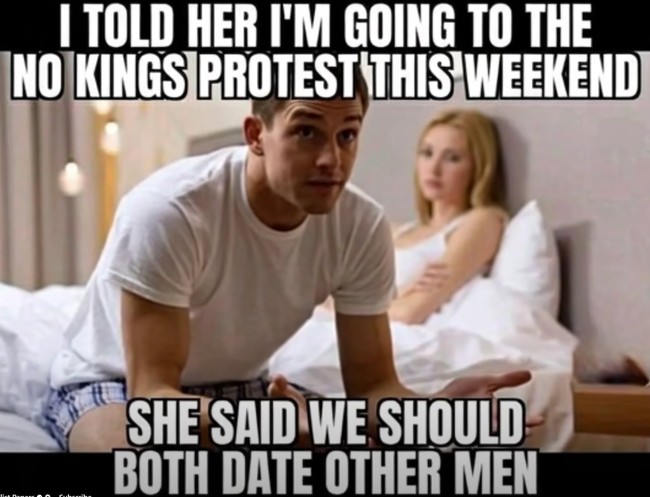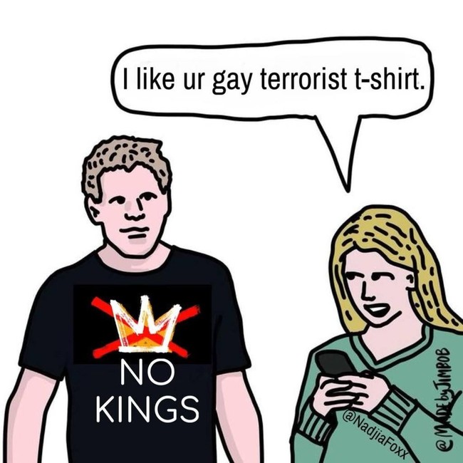 Building an entire movement around the slogan “No Kings,” and then putting an asterisk on the slogan to modify it to “No Kings We Don’t Like” is on the nose. It’s the “My Body, My Choice” lie in another form. The people who scream about bodily autonomy one moment are forcing you to take experimental vaccines you don’t want or need the next.
